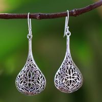 Artisan Crafted Sterling Silver Dangle Earrings 'Filigree Teardrop' Item ID: 2669925648
