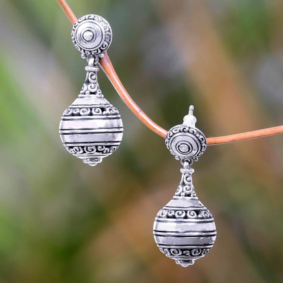 Artisan Crafted Sterling Silver Dangle Earrings from Bali 'Kendi' Item ID: 2671702656