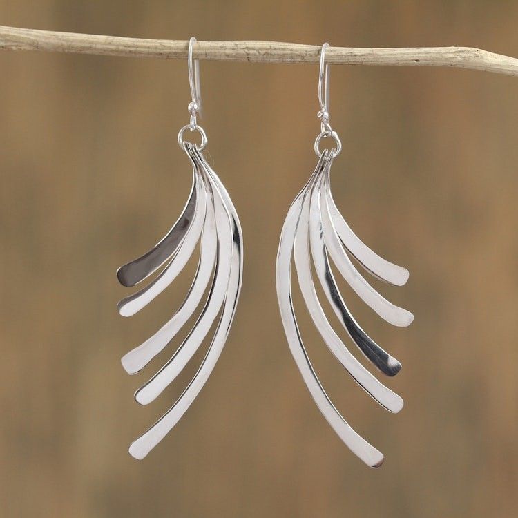 Artisan Crafted Sterling Silver Dangle Earrings from Mexico 'Illusory Cascade' Item ID: 2671808723