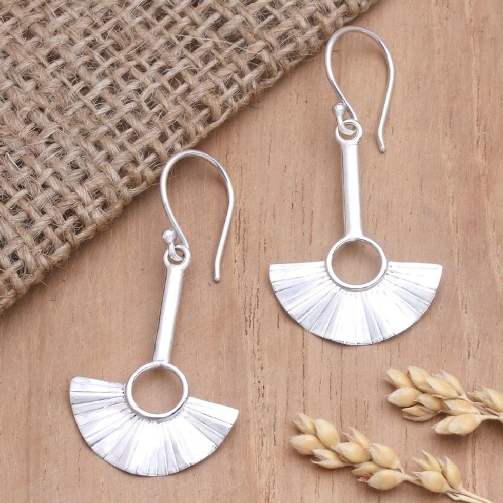 Artisan Crafted Sterling Silver Dangle Earrings 'Handheld Fan' Item ID: 2671669950