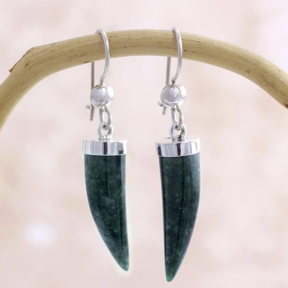 Artisan Crafted Sterling Silver Dark Green Jade Earrings 'Forest Cat' Item ID: 2669933701