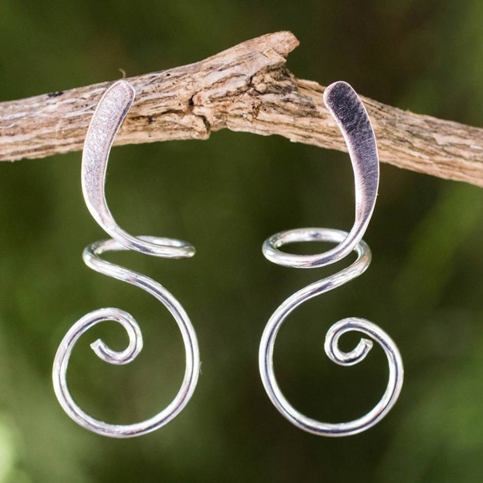 Artisan Crafted Sterling Silver Drop Earrings from Thailand 'Lovely Spiral' Item ID: 2669926074