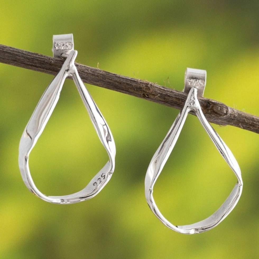 Artisan Crafted Sterling Silver Drop Earrings 'Sleek Stirrups' Item ID: 2671690644