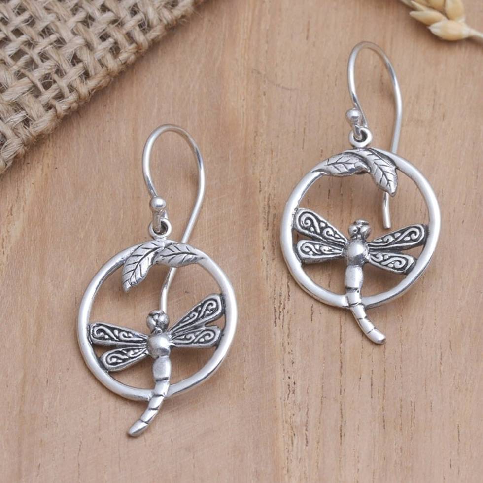 Artisan Crafted Sterling Silver Earrings 'Dragonfly Idyll' Item ID: 2671747835