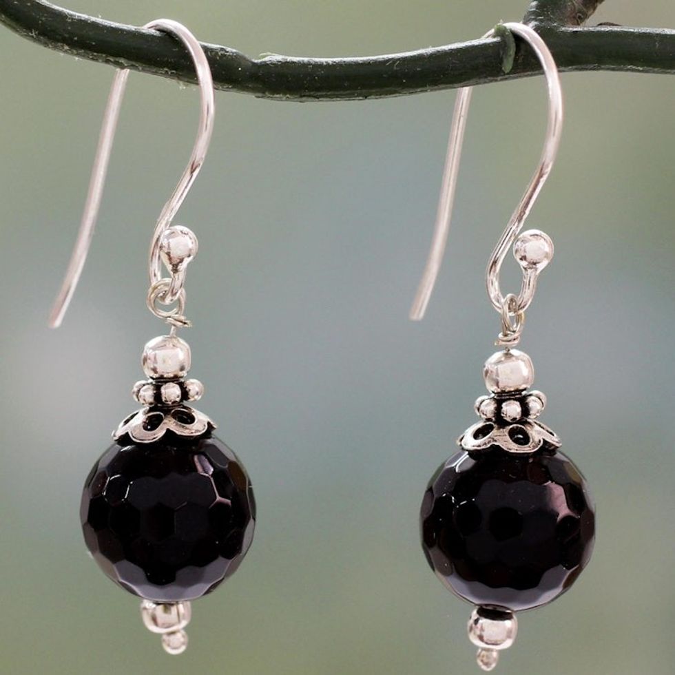 Artisan Crafted Sterling Silver Earrings with Black Onyx 'Glorious Black' Item ID: 2669924944