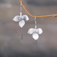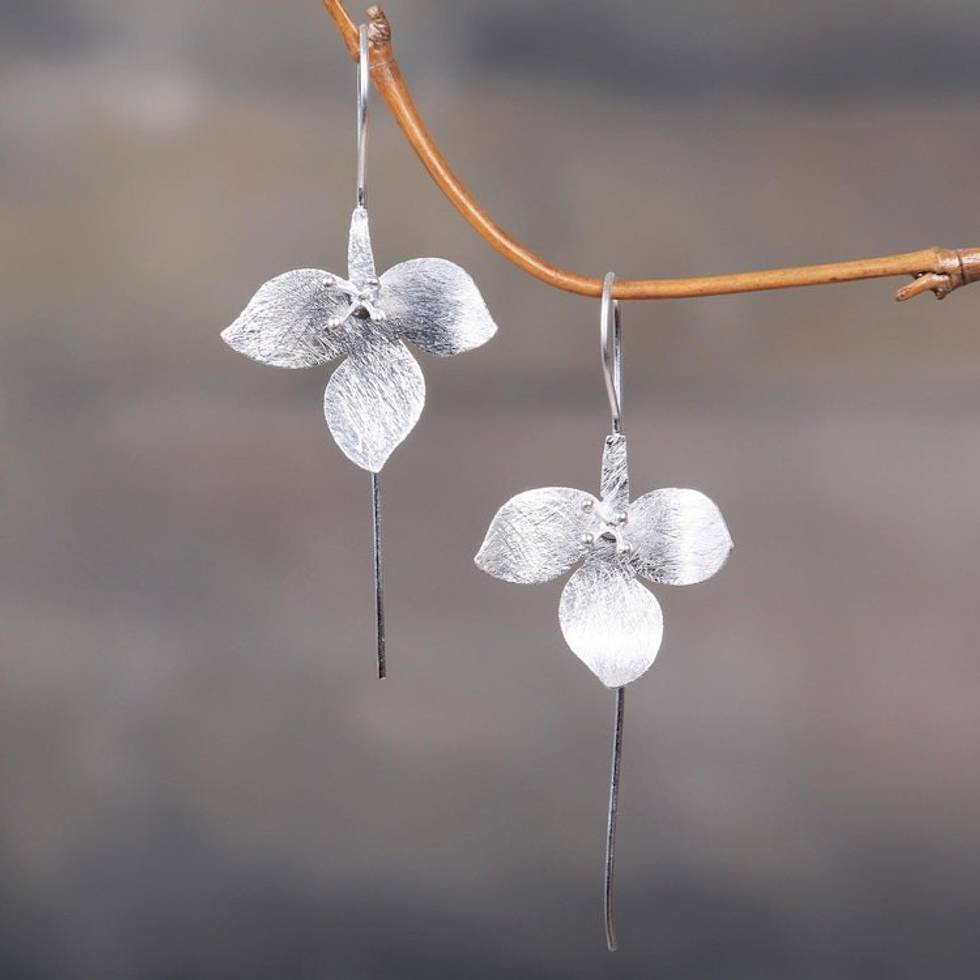 Artisan Crafted Sterling Silver Floral Drop Earrings 'Silver Tri Flower' Item ID: 2671702372