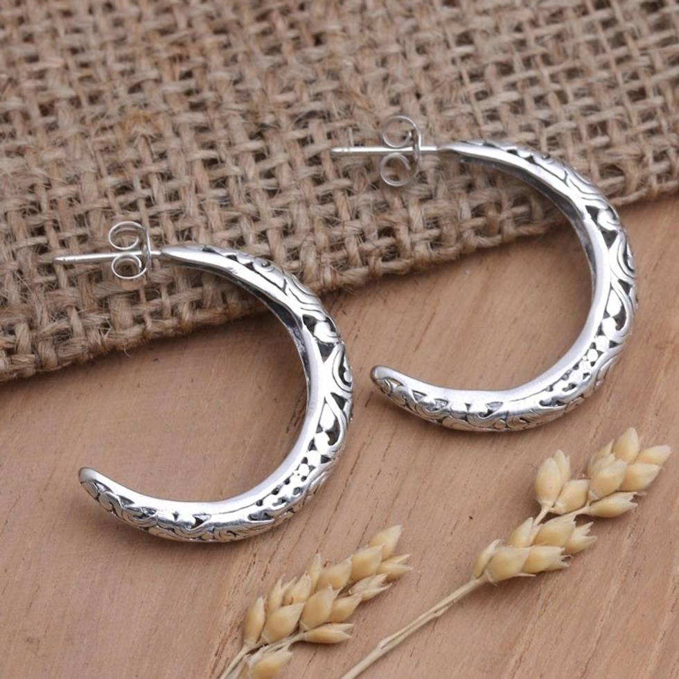 Artisan Crafted Sterling Silver Half-Hoop Earrings 'Regal Glance' Item ID: 2671670084