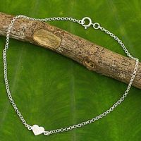 Artisan Crafted Sterling Silver Heart Anklet from Thailand 'Full Heart' Item ID: 2671802061