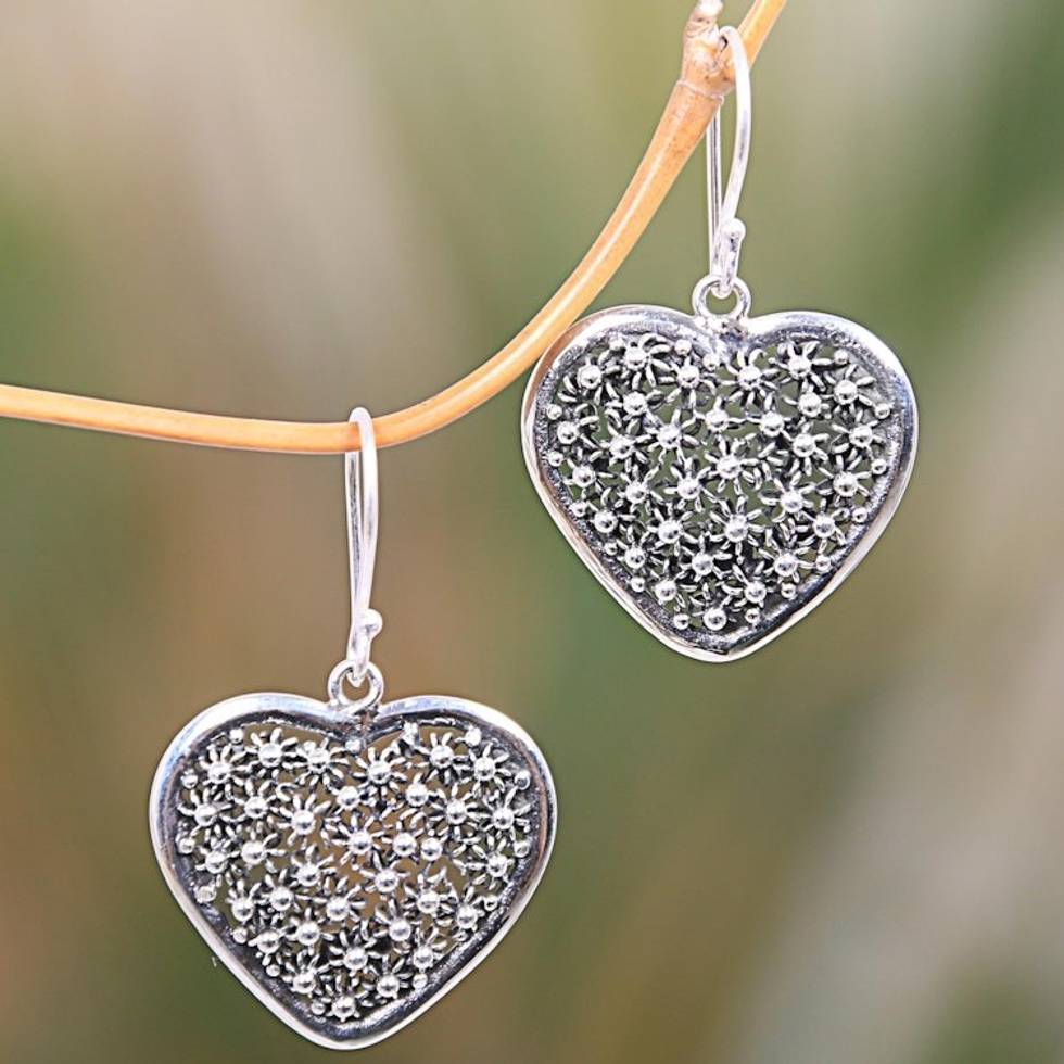 Artisan Crafted Sterling Silver Heart Earrings from Bali 'Heart of Coral' Item ID: 2671702385