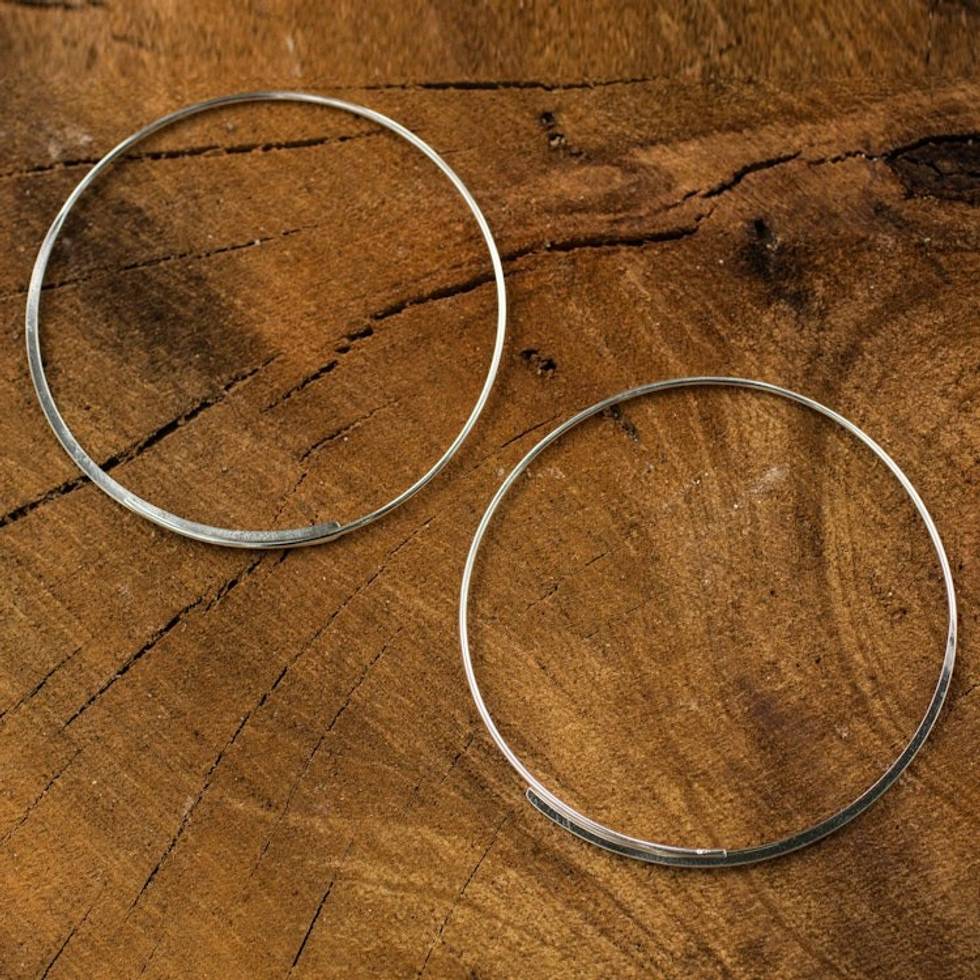Artisan Crafted Sterling Silver Hoop Earrings 'Minimalist Cycle' Item ID: 2669925691