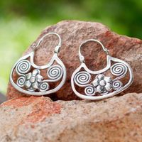 Artisan Crafted Sterling Silver Hoop Earrings from Mexico 'Floral Mazahua' Item ID: 2671808902