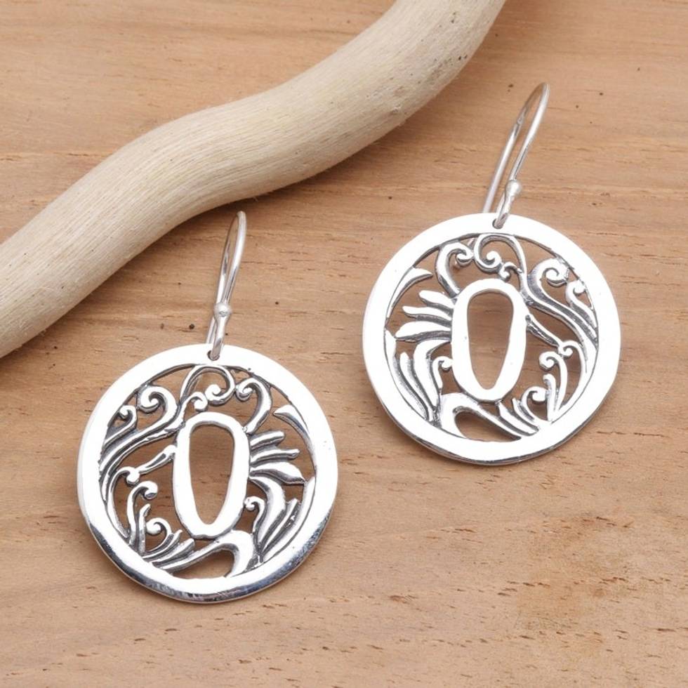 Artisan Crafted Sterling Silver Japanese Style Earrings 'Tsuba Protection' Item ID: 2671737180