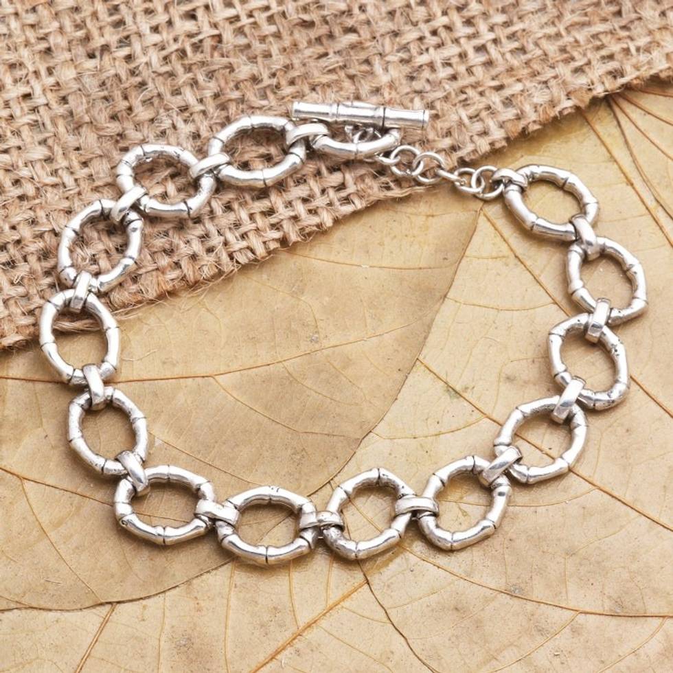 Artisan Crafted Sterling Silver Link Bracelet 'Bamboo Intrigue' Item ID: 2669920948
