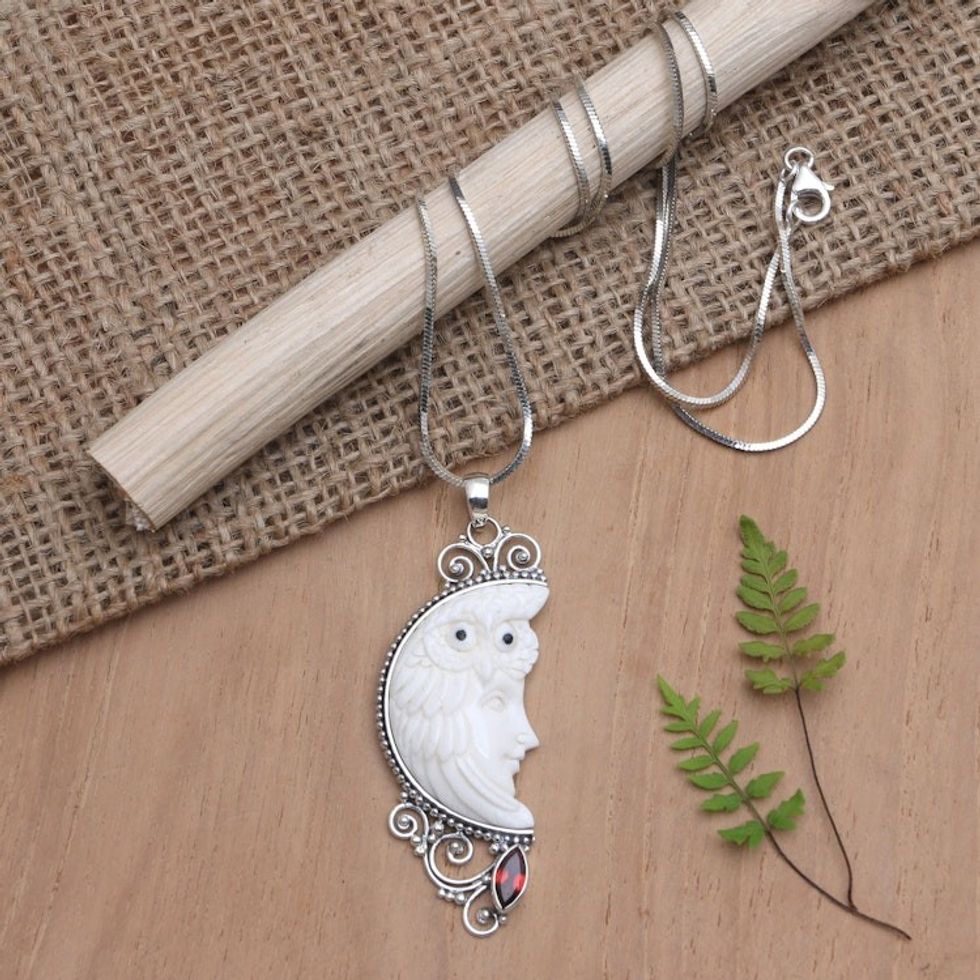 Artisan Crafted Sterling Silver Necklace with Garnet 'Snowy Owl' Item ID: 2671671866