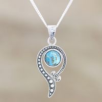 Artisan Crafted Sterling Silver Pendant Necklace 'Dotted Blue' Item ID: 2671787928