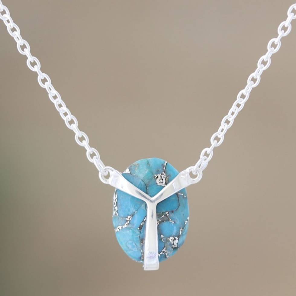 Artisan Crafted Sterling Silver Pendant Necklace 'Modern Scarab' Item ID: 2671787713