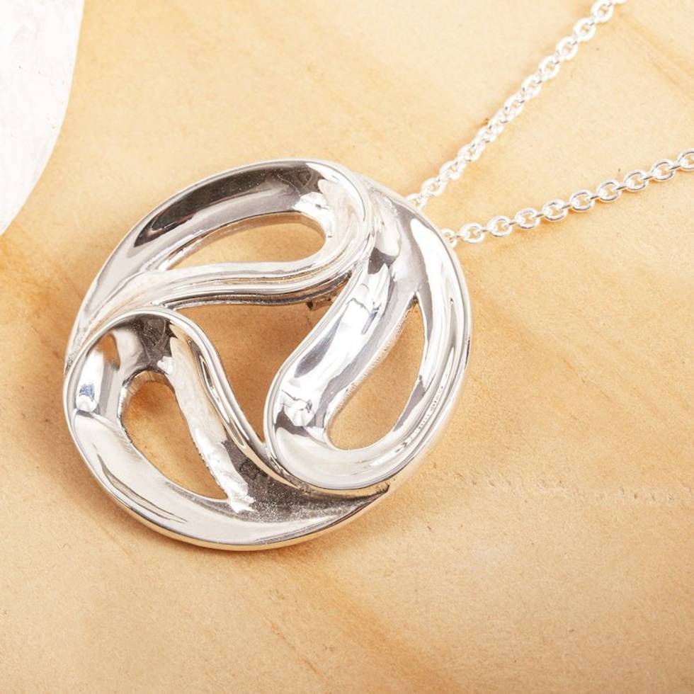 Artisan Crafted Sterling Silver Pendant Necklace 'Triple Yin-Yang' Item ID: 2671639100