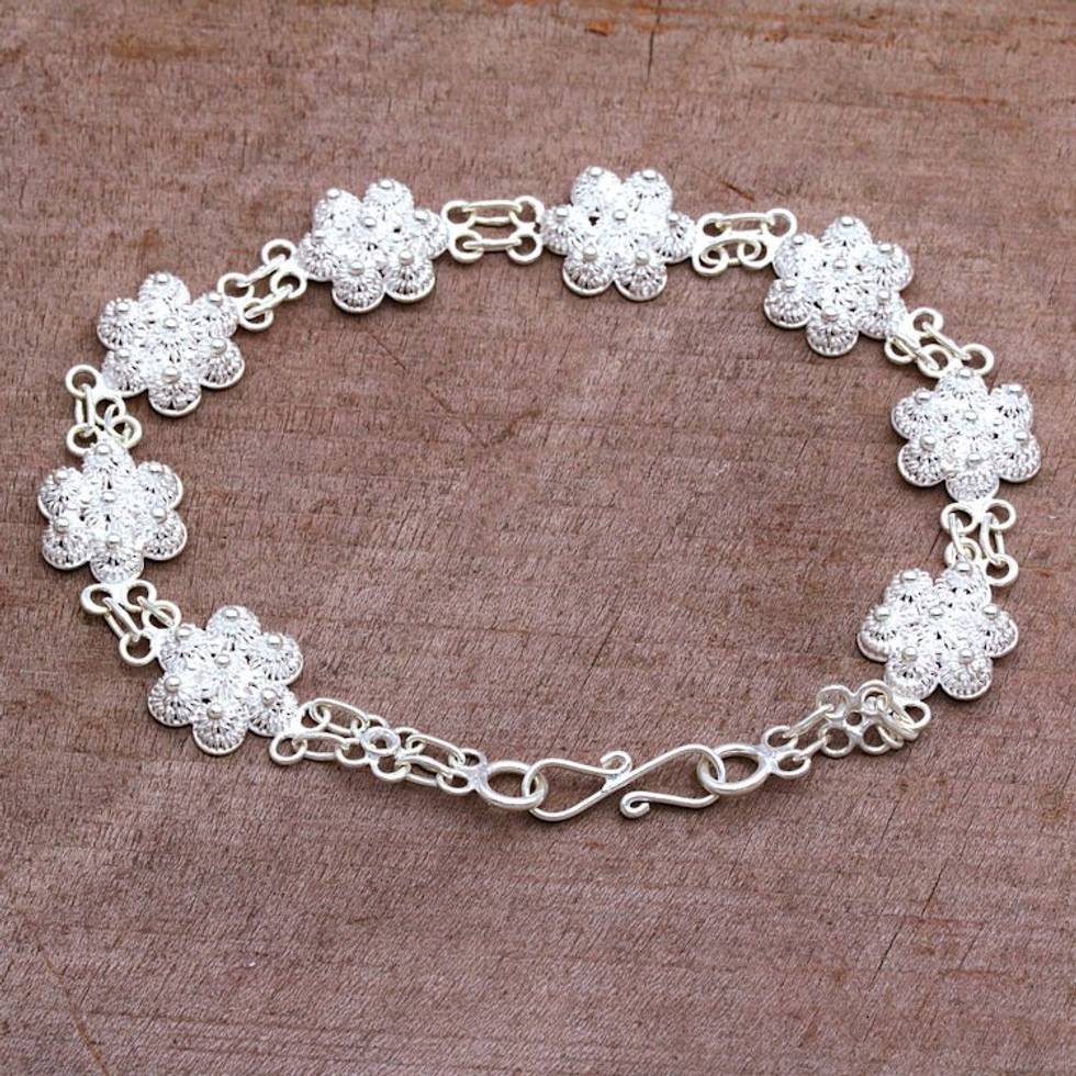 Artisan Crafted Sterling Silver Station Bracelet from Bali 'Seven Stupas' Item ID: 2671701438