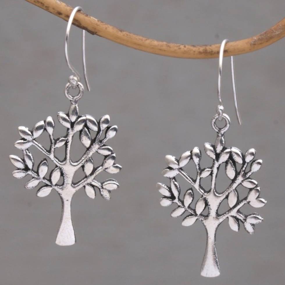 Artisan Crafted Sterling Silver Tree Earrings from Bali 'Lemon Trees' Item ID: 2671735916