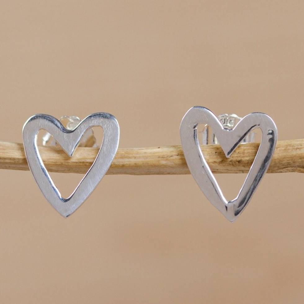 Artisan Crafted Sterling Stud Earrings 'Solitary Heart' Item ID: 2671808001