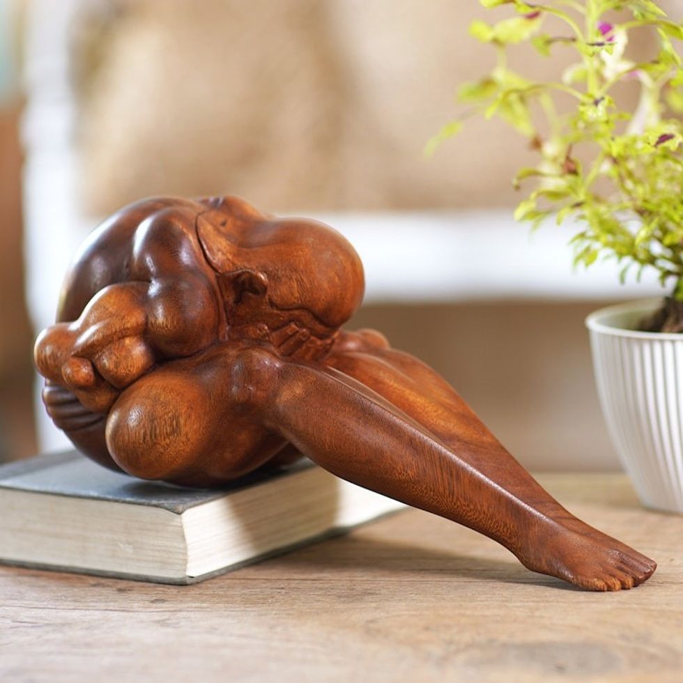Artisan Crafted Suar Wood Figure Sculpture 'Unknown Sorrow' Item ID: 2671746710