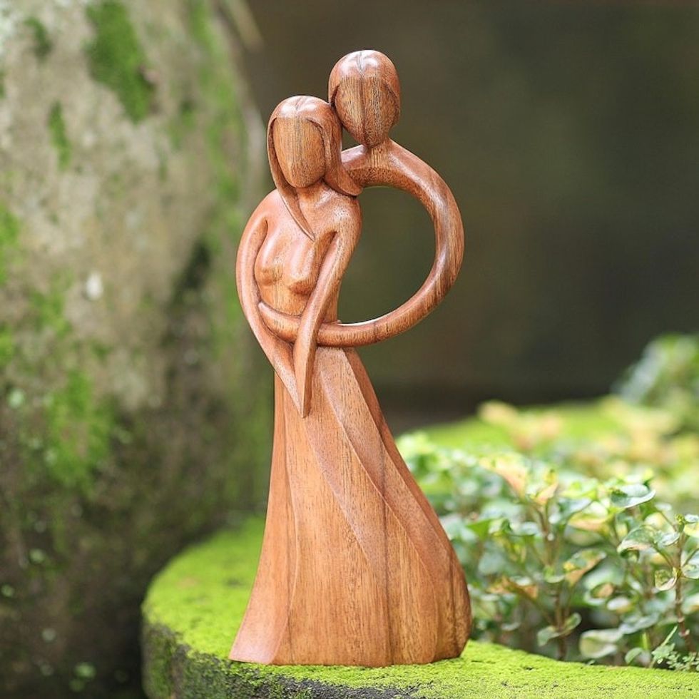 This is both beautifully carved and conceptually loving. To be blessed and protected by angels spiritual or terrestrial make a wonderful gift for a loved one or yourself. Thank you Nyoman Sudan.