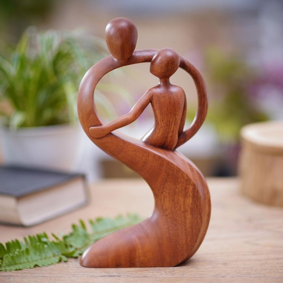 I purchased this wood sculpture for my adult daughter who loves dancing. It feels so smooth. The dancer flows with ribbons. She is free spirited and graceful. Nice size as well.