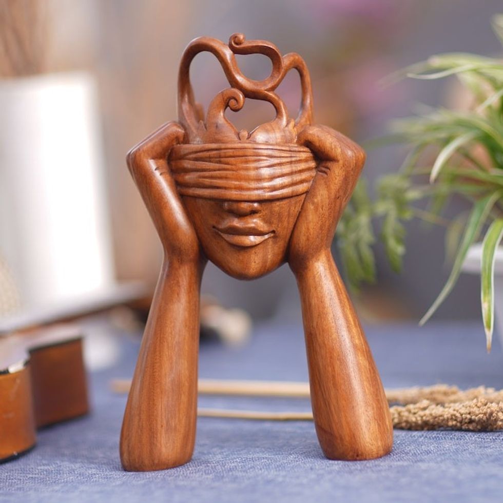 Artisan Crafted Suar Wood Statuette from Bali 'Surprising You' Item ID: 2671748264