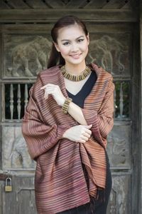 Artisan Crafted Tan Striped Batik Shawl from Thailand 'Romance in Tan' Item ID: 2671640832