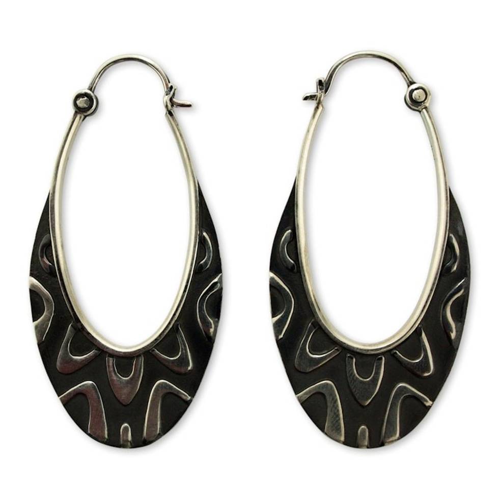Artisan Crafted Taxco Silver Hoop Earrings from Mexico 'Antique Taxco Lace' Item ID: 2671808619