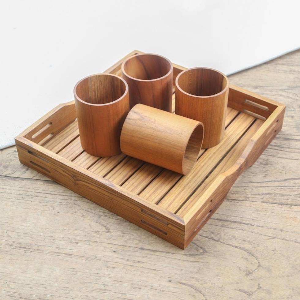 Artisan Crafted Teak Wood Tray from Bali 'Refreshments' Item ID: 2671747364