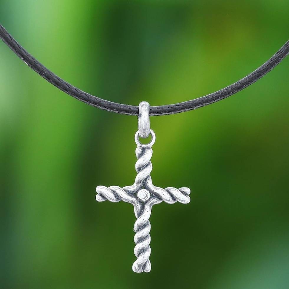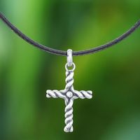 Artisan Crafted Thai Sterling Silver Cross Necklace with CZ 'Beacon Cross' Item ID: 2671799175