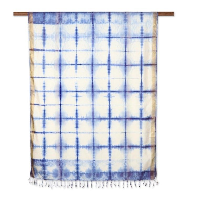 Artisan Crafted Tie-Dyed Silk Shawl from India 'Blue Tide' Item ID: 2669892212