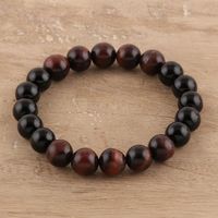 Artisan Crafted Tiger's Eye and Onyx Beaded Stretch Bracelet 'Evening Intrigue' Item ID: 2671792901