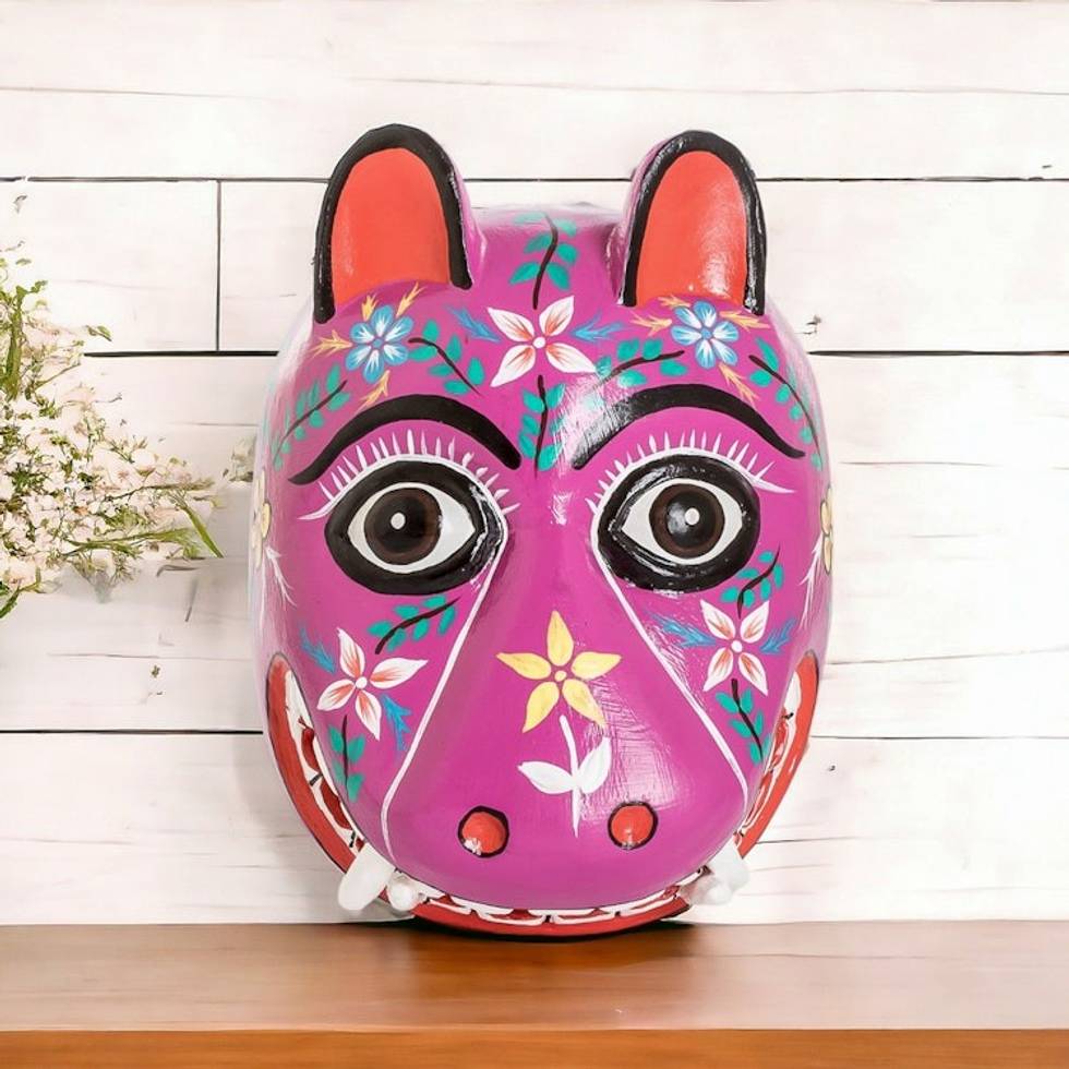 Artisan Crafted Traditional Wood Mask 'Purple Maya Jaguar' Item ID: 2671778214