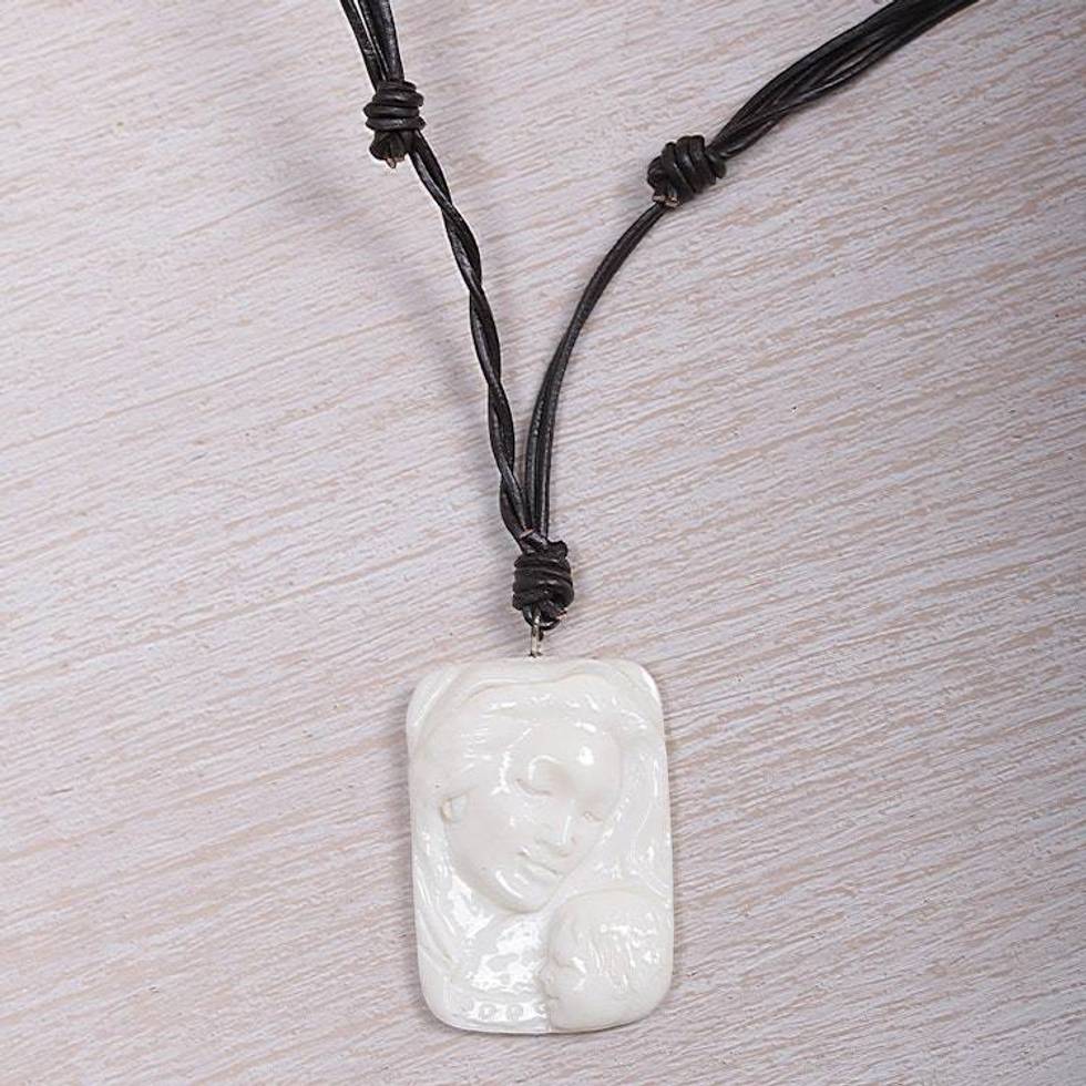 This lovely bone carved necklace reminds me of my father's loving arms wrapped protectively around me. He died just a few months ago, so this necklace is particularly precious to me. I wear it often so he is always with me. Very fine detail also.