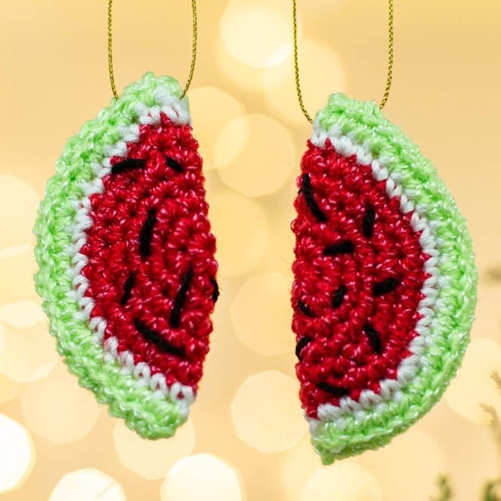 Artisan Crafted Watermelon Ornaments Pair 'Sweet Slice' Item ID: 2671808230