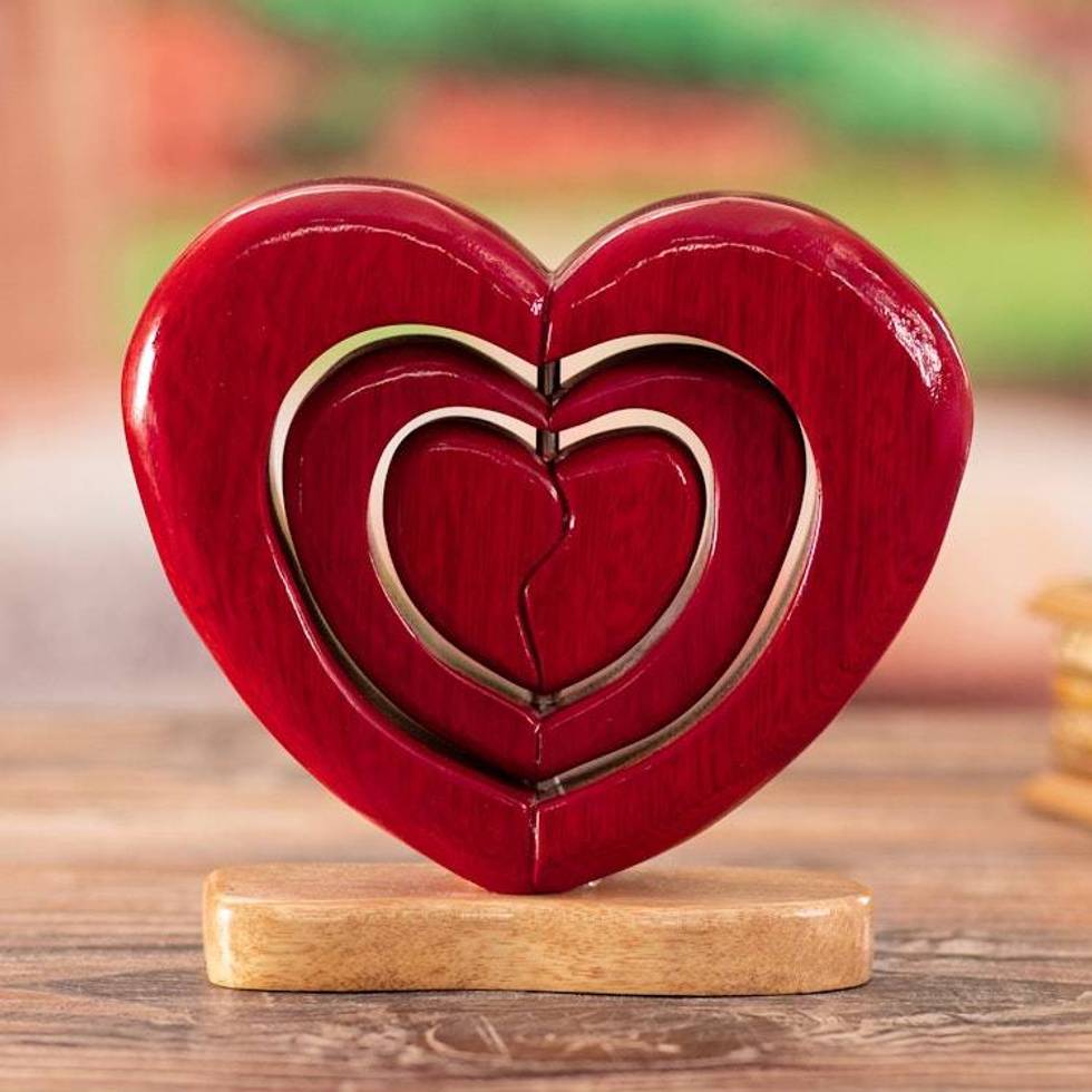 Artisan Crafted Women's Heart Shaped Folk Art Sculpture 'Heart Trio' Item ID: 2676641880