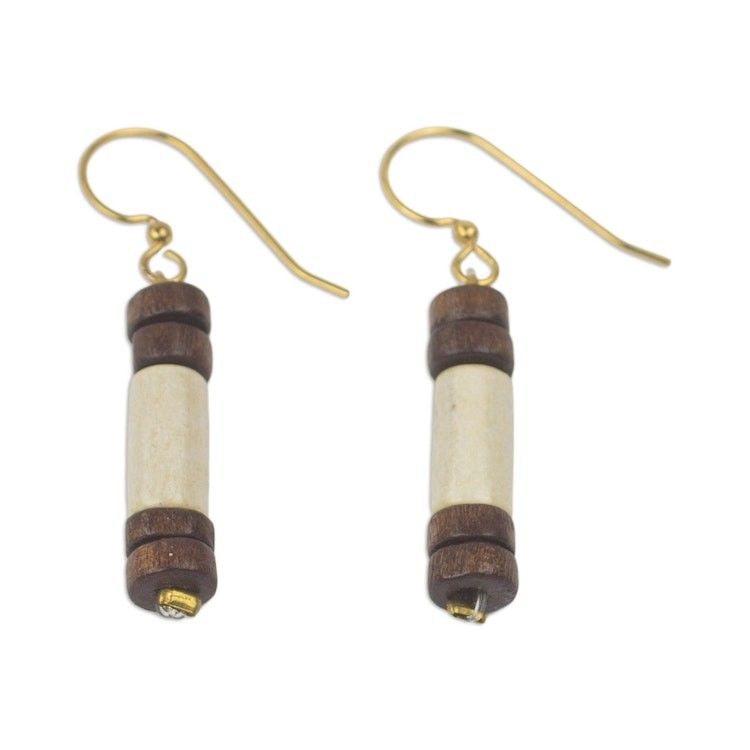 Artisan Crafted Wood Beaded Dangle Earrings 2 Pairs 'Natural Simplicity' Item ID: 2671800775