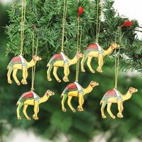 Artisan Crafted Wood Camel Ornaments Set of 6 'Christmas Camels' Item ID: 2671789448