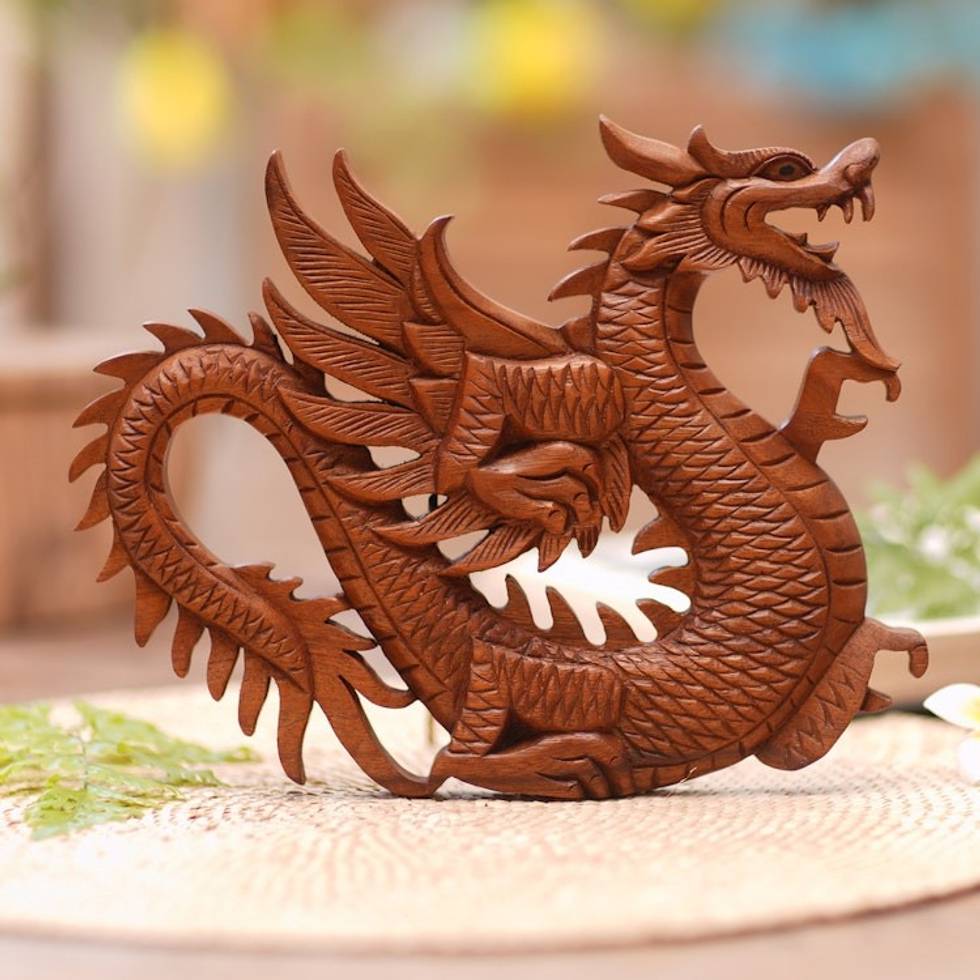 This is such an intricate piece. It goes very well with my other dragon sculptures. I've never had one made of wood before! So nice.