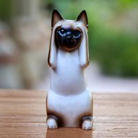 Artisan Crafted Wood Sculpture 'Hear No Evil Siamese Cat' Item ID: 2671699313