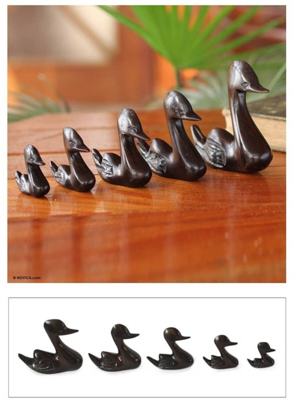 Artisan Crafted Wood Sculpture Set of 5 'Duck Family' Item ID: 2671806725
