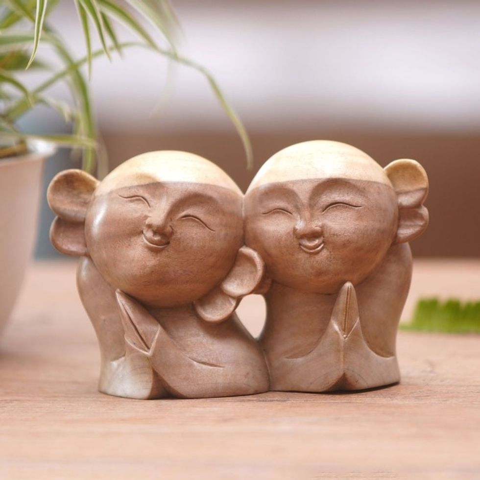 Artisan Crafted Wood Sculpture 'Twin Jizo' Item ID: 2671748355