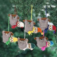 Artisan Crafted Wool Felt Ornaments Set of 6 'Sweet Sloths' Item ID: 2669892161