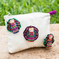 Artisan Crafted Worry Doll Cosmetic Bag 'Travel Companions' Item ID: 2671776715