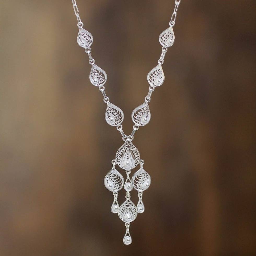 Artisan Crafted Y-Necklace in Sterling Silver Filigree Art 'Sunrise Dew' Item ID: 2671691645