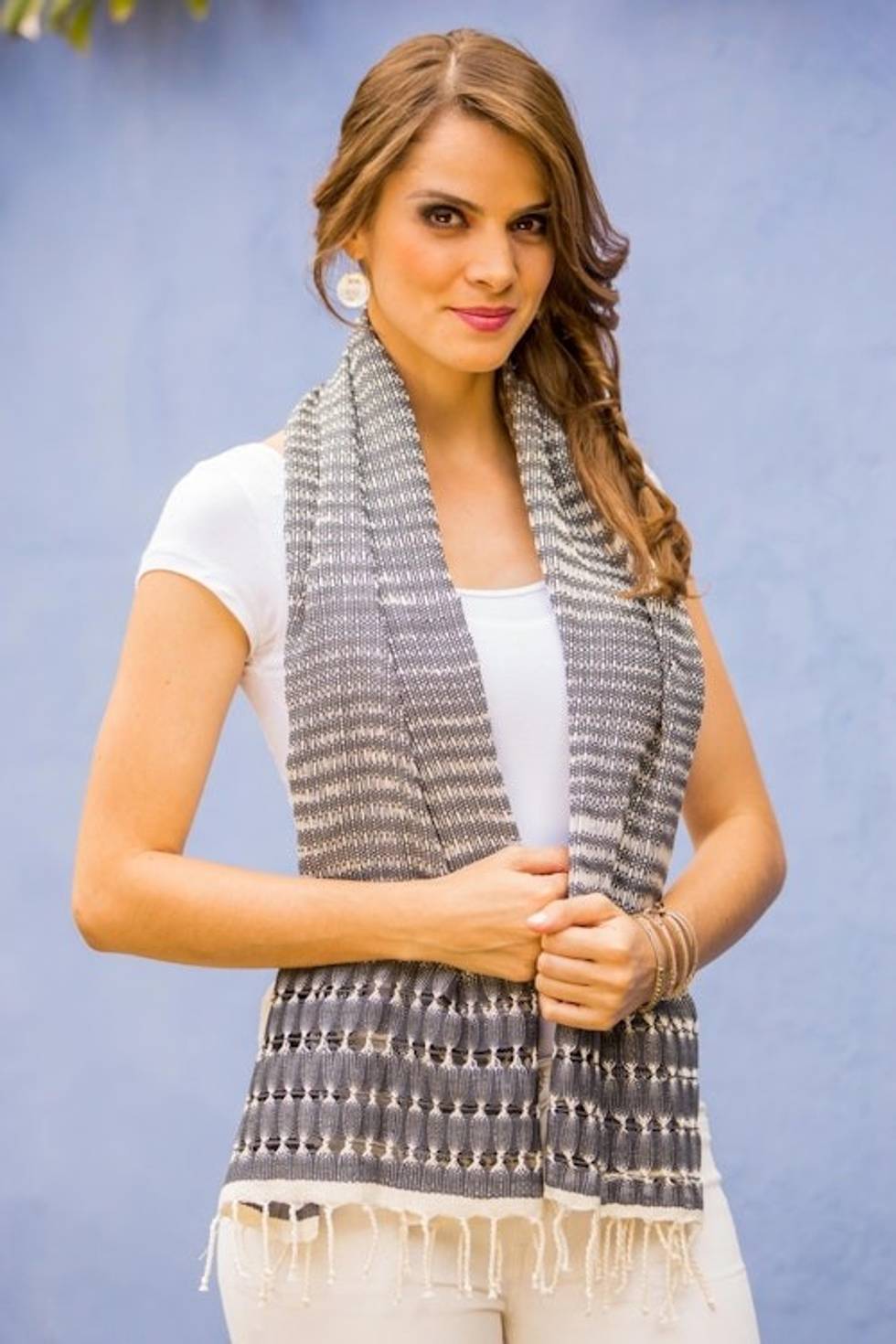 Artisan Designed and Crafted Cotton Scarf in Grey 'Grey Roads Found' Item ID: 2671778308