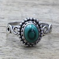 Artisan Designed Sterling Silver and Malachite Cocktail Ring 'Hypnotic Forest' Item ID: 2671793955