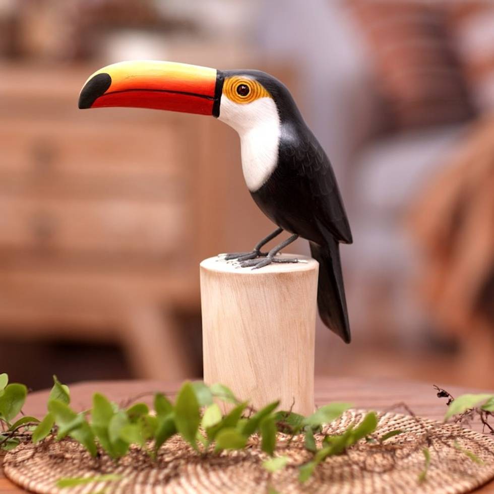 Artisan Hand-Carved Bird Sculpture 'Tropical Toucan' Item ID: 2671820925